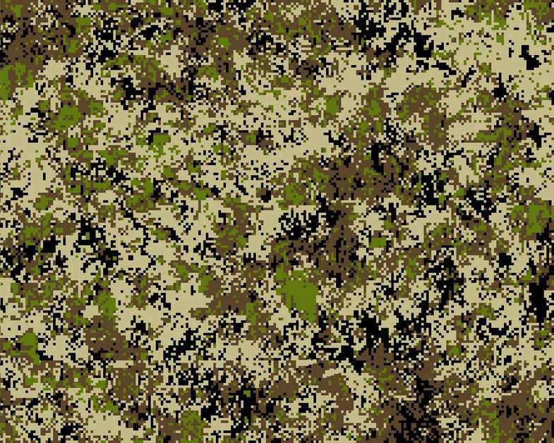 Для прерывания линий и контуров и был изобретен пиксельный камуфляж. Названия расцветок "цифровых" маскировочных костюмов следующие: